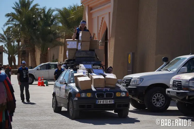 Et le soleil est au rendez-vous pour accompagner l’élan de solidarité au programme de cette fin de journée. Il est en effet temps pour les participants de décharger leurs voitures, souvent chargées de dons, à l’image de la team 398 et ses 16 cartons récupérés à Fouras pour le Rotary/Rotaract. Nombreux sont les équipages à choisir le Bab el Raid pour sa dimension solidaire, comme Mylène, de la team 183 , et Jennifer, de la team 184 . « C’est vraiment l’aspect qui comptent le plus pour nous », soulignent les deux amis qui ont organisé des lotos pour récolter des dons. « Avec le bouche à oreille, il y a même des personnes qui ont déposé des dons devant la porte », se félicitent-elles encore.