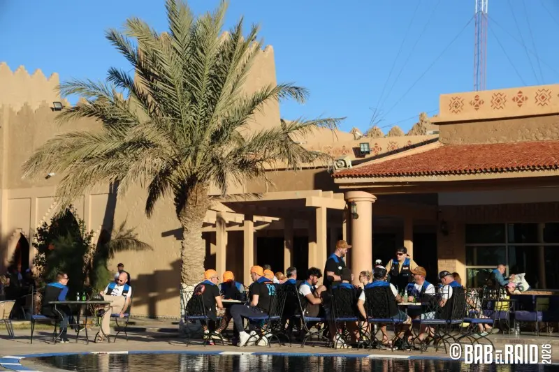 Les participants se retrouvent ensuite au bord de la piscine de l’hôtel Bélère pour un moment de détente avant la première étape du lendemain ! Une étape dite marathon, c’est-à-dire qu’ils dormiront en autonomie dans le désert pour une soirée mémorable à la belle étoile souvent très attendue par les équipages.