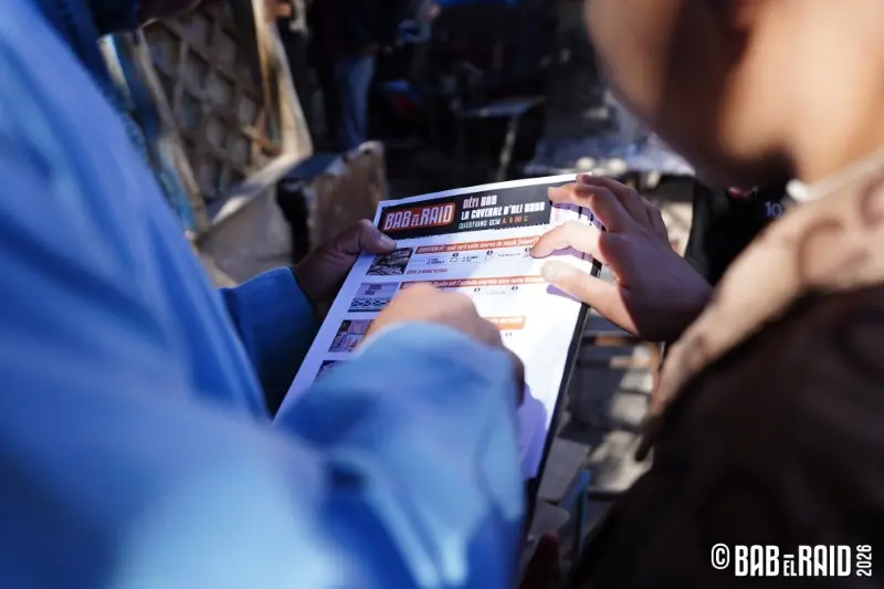 Les équipages ne pouvaient pas quitter le désert sans passer par un souk. Et pour cela, direction Rissani et ses dédales colorés, la fameuse « Caverne d’Ali Baba » ! Comme à Fouras, le Défi Bab du jour permet de découvrir un lieu typique. Et pour un moment plus privilégié, les participants ont été divisés en plusieurs groupes, ce qui permet d’éviter la cohue dans le souk et de découvrir un peu plus en profondeur la culture de la région grâce à des questions précises.